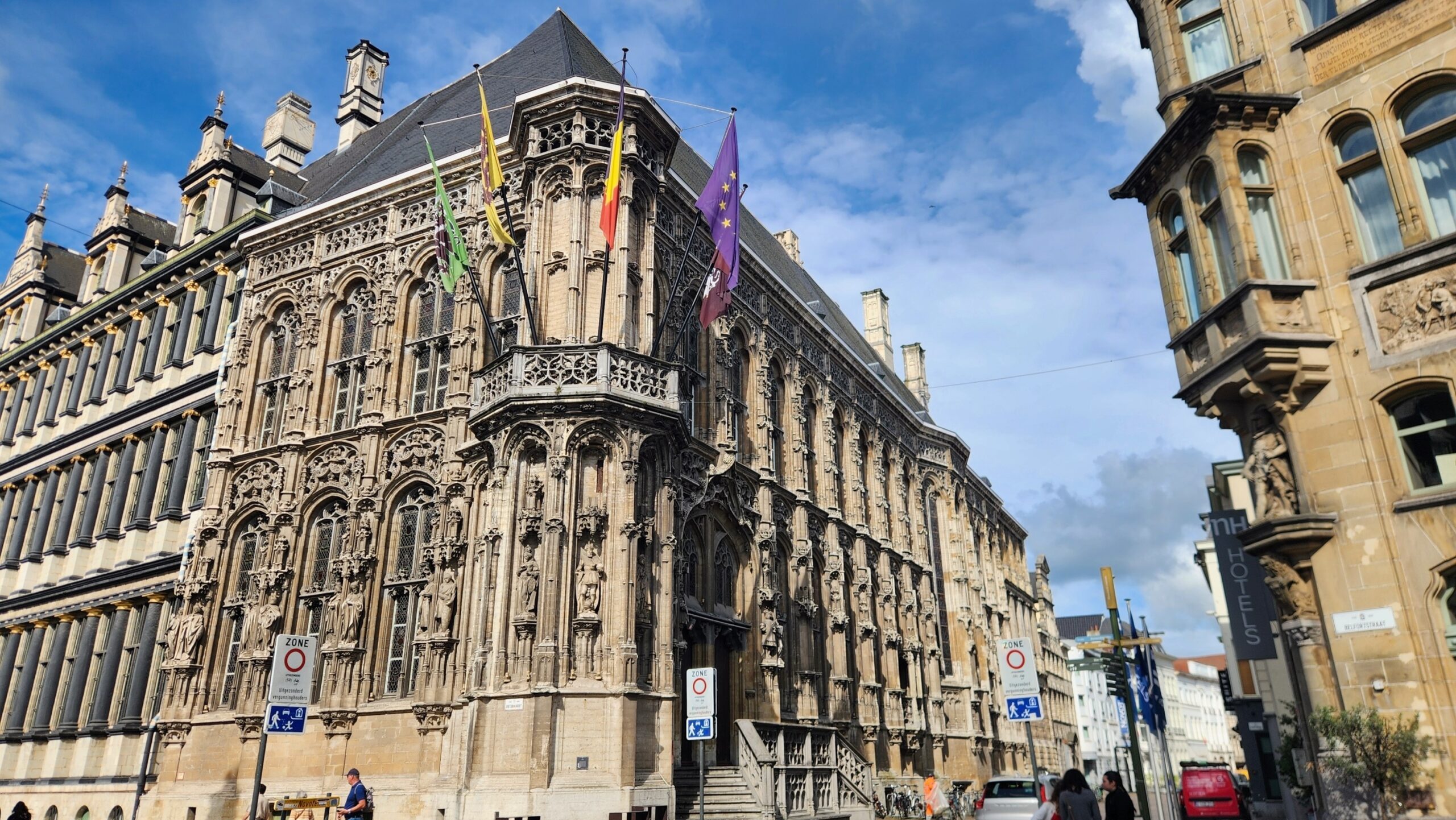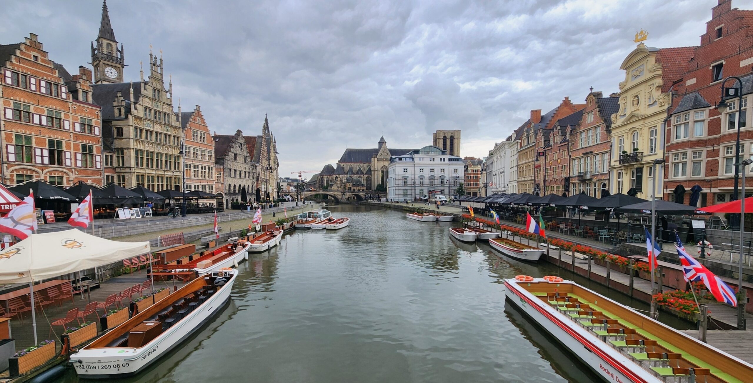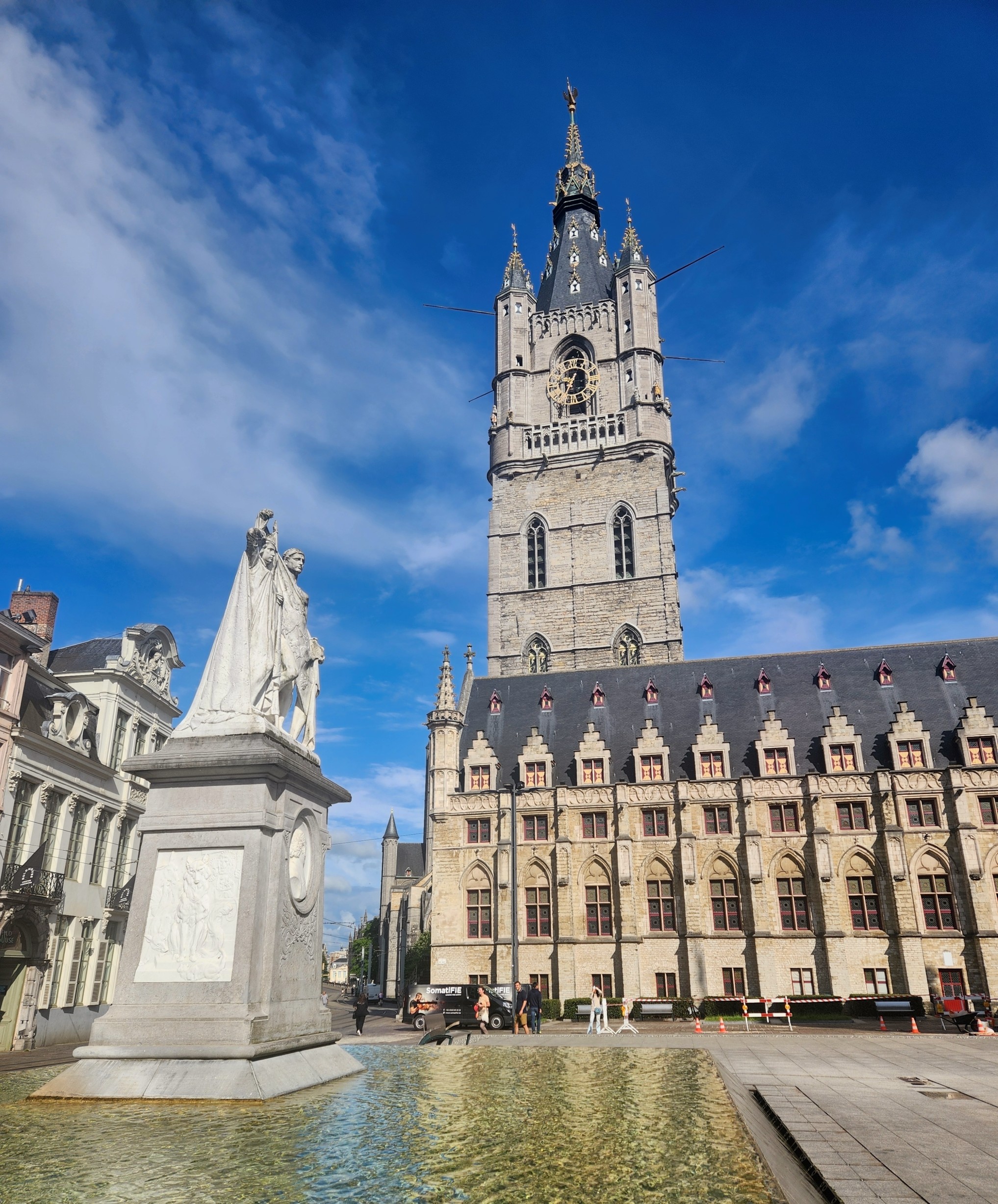 Back in Ghent, we enjoyed a canal tour with Boat in Gent. The tour was fun and in multiple languages (which is nice, you can just catch the next tour). The view from the canals is amazing! We enjoyed the Flemish architecture of the Korenlei and Graslei. The yellow townhouse on the Korenlei is a Guildhall of Unfree Boatmen (from outside Ghent who had to pay a toll and wait), also known as “The Anchor” and has a ship weathervane on top, dolphins on the top tier, and anchors below that. Gorgeous! Note that across the canal on the Graslei is the famous Guildhall of Free Boatmen. We also enjoyed the glorious pictures of the Gravensteen from the canal.